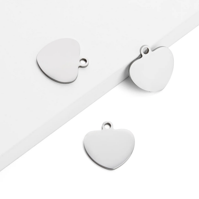 Stilren och elegant hjärtformad berlock i högkvalitativt rostfritt stål – perfekt för personlig gravyr. Den blanka, släta ytan gör det enkelt att gravera namn, initialer, datum eller ett kärleksfullt budskap som gör smycket unikt.