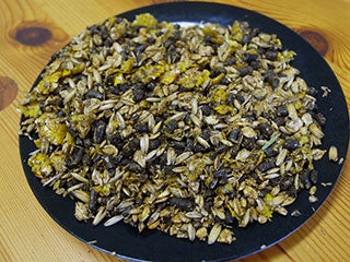 Havre Kornflingor Majsflingor Lusern Betfor Vetekli Sojaolja Melass Soja Mineralämnen Koksalt Vitamin & Spårämnesblandning Vete Diamond V (fermenterad jästkultur) Potatisprotein Lysin (teknisk)