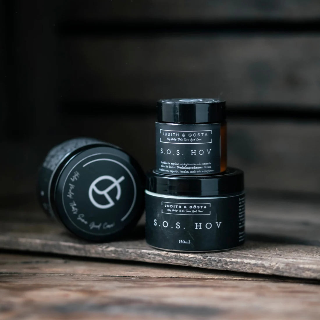 S.O.S. HOV är en skonsam men kraftfull salva framtagen för att vårda och skydda. Med noggrant utvalda naturliga ingredienser och salicylsyra hjälper salvan till att hantera problem som torrhet, irritation och småsår samtidigt som den skapar en skyddande barriär mot fukt och smuts så huden kan återhämta sig i lugn och ro.